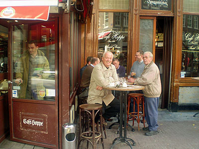 Napríklad z kaviarničky Hoppe v jednom z centier mesta vo štvrti Spui. Tá bola kedysi, na konci 60. rokov, strediskom intelektuálov, ľavicových radikálov, študentov, ktorí sa práve búrili proti jestvujúcemu poriadku. Teraz tu človeka zachváti nenapodobiteľná atmosféra spolupatričnosti. Šedivý a strapatý čašník ma oslovuje vo flámčine, ale bez problémov prejde na angličtinu.