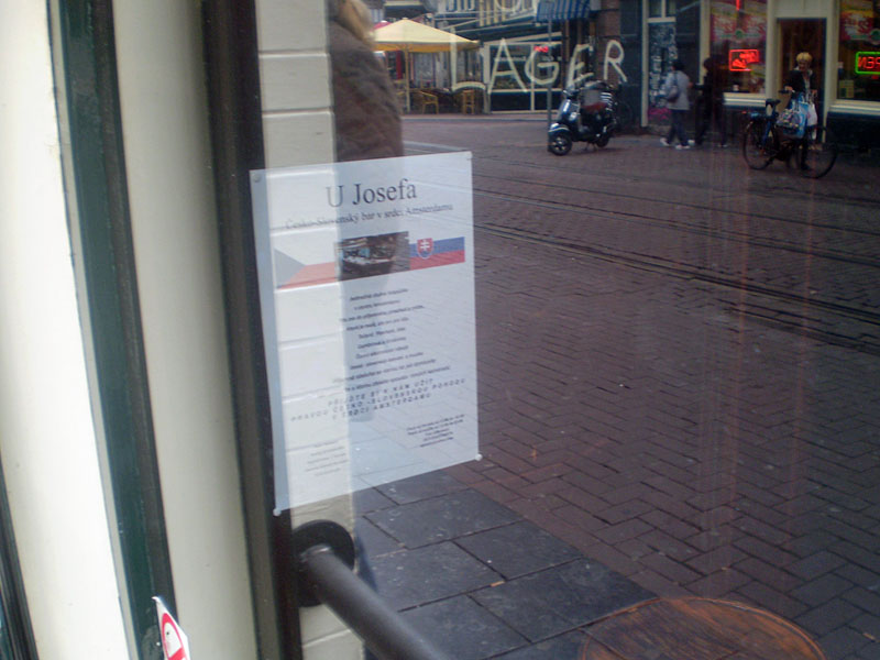 Neďaleko opery prekvapuje veľká česká zástava namaľovaná na stiahnutých roletách reštaurácie. Takisto sa nám oči vyočia pri pohľade na malý podnik s názvom U Josefa - česko-slovenská reštaurácia v srdci Amsterdamu.