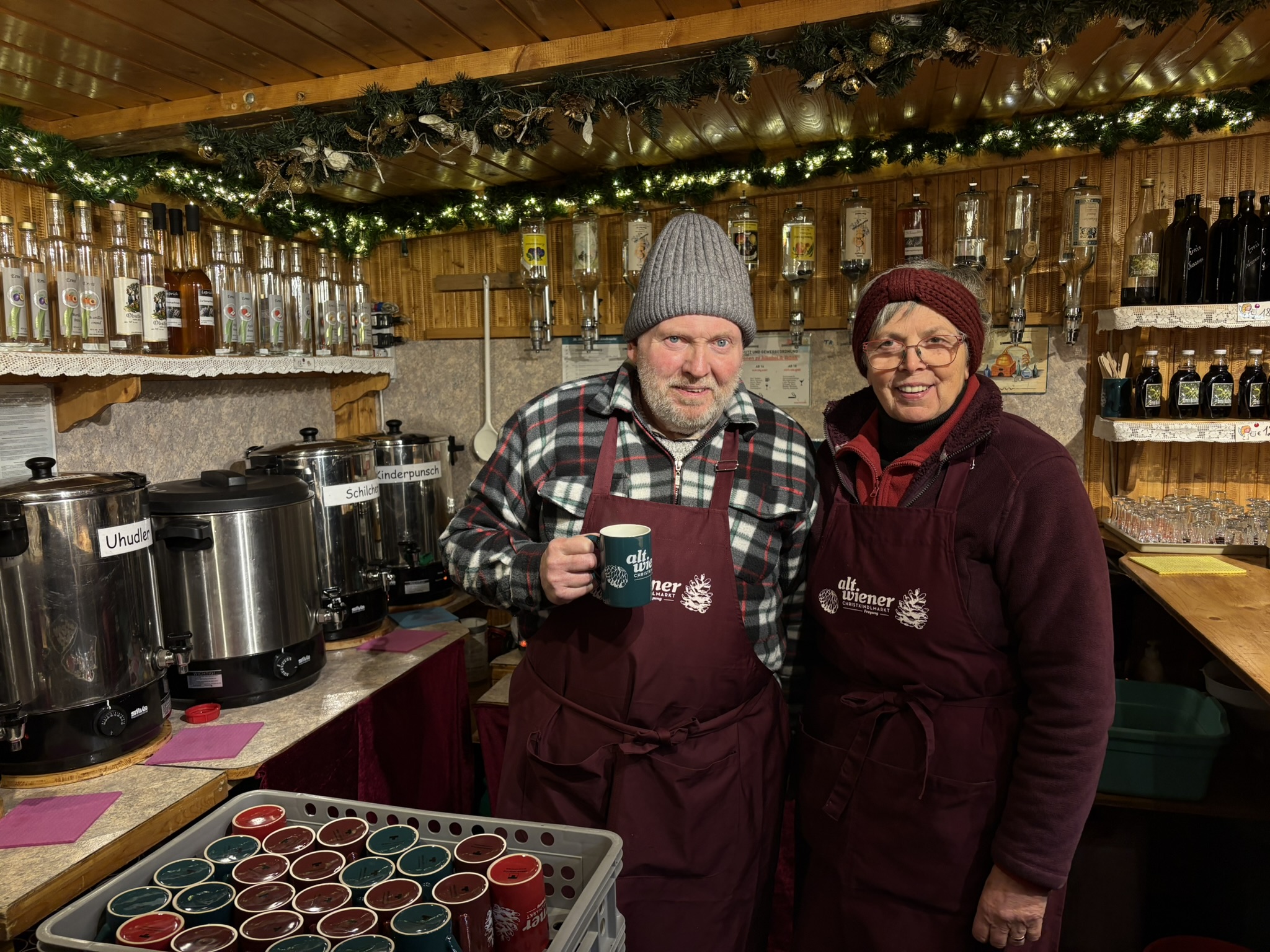 Weinviertel je největší vinařskou oblastí Rakouska – začíná hned za Vídní, na severu hraničí s Českem, na východě se Slovenskem. Víno tam není jen zboží, ale součást místního řemesla a tradice. A právě to chce Manfred zachovat i tady ve Vídni. Se svou ženou připravují svařené víno i punč na stejném trhu už 38 let. Za tu dobu viděl, jak se proměnila celá adventní Vídeň – jak přibylo stánků, světel, turistů. Jeho recept ale zůstal stejný.