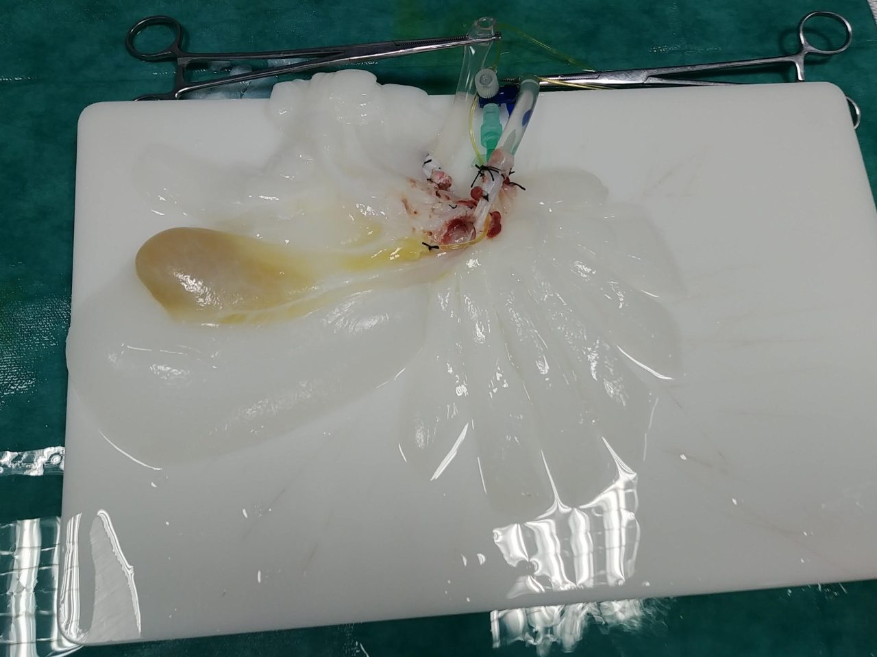 Prasečí játra teď připomínají spíš laboratorní model než živý orgán. Jsou celá bílá – zůstala z nich jen jemná síť proteinů, která drží tvar tkáně. Do tohoto skeletu budou vědci vkládat lidské buňky. Nejdřív však musí pečlivě zkontrolovat, že žádná část struktury není poškozená.