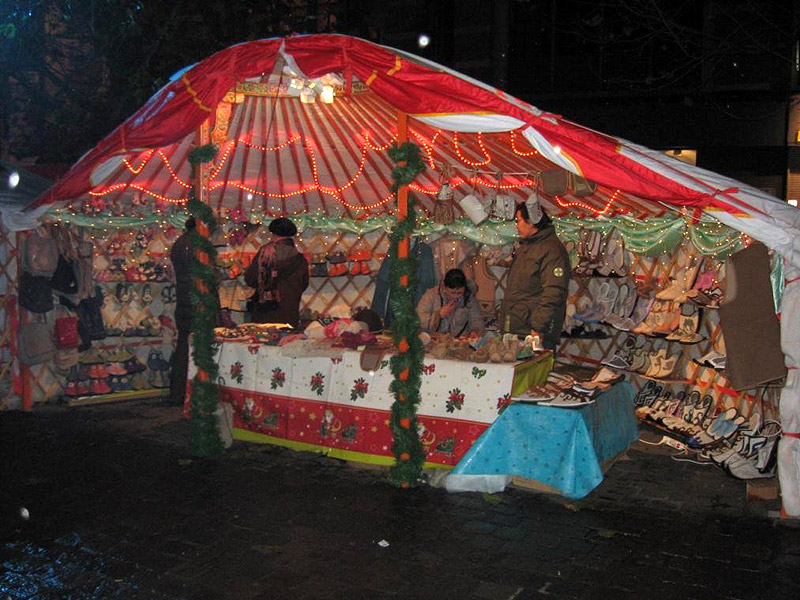 Na náměstí před kostelem svaté Kateřiny stojí několik jurt, ze kterých voní opékané maso nebo zapálené tyčinky. Na pultech jsou vyložené kožené čepice a rukavice, kašmírové šátky. Na pódiu hrají mladí Mongolové na jakousi basu a loutnu. Z jednoho stánku báječně voní placky připomínající langoše.