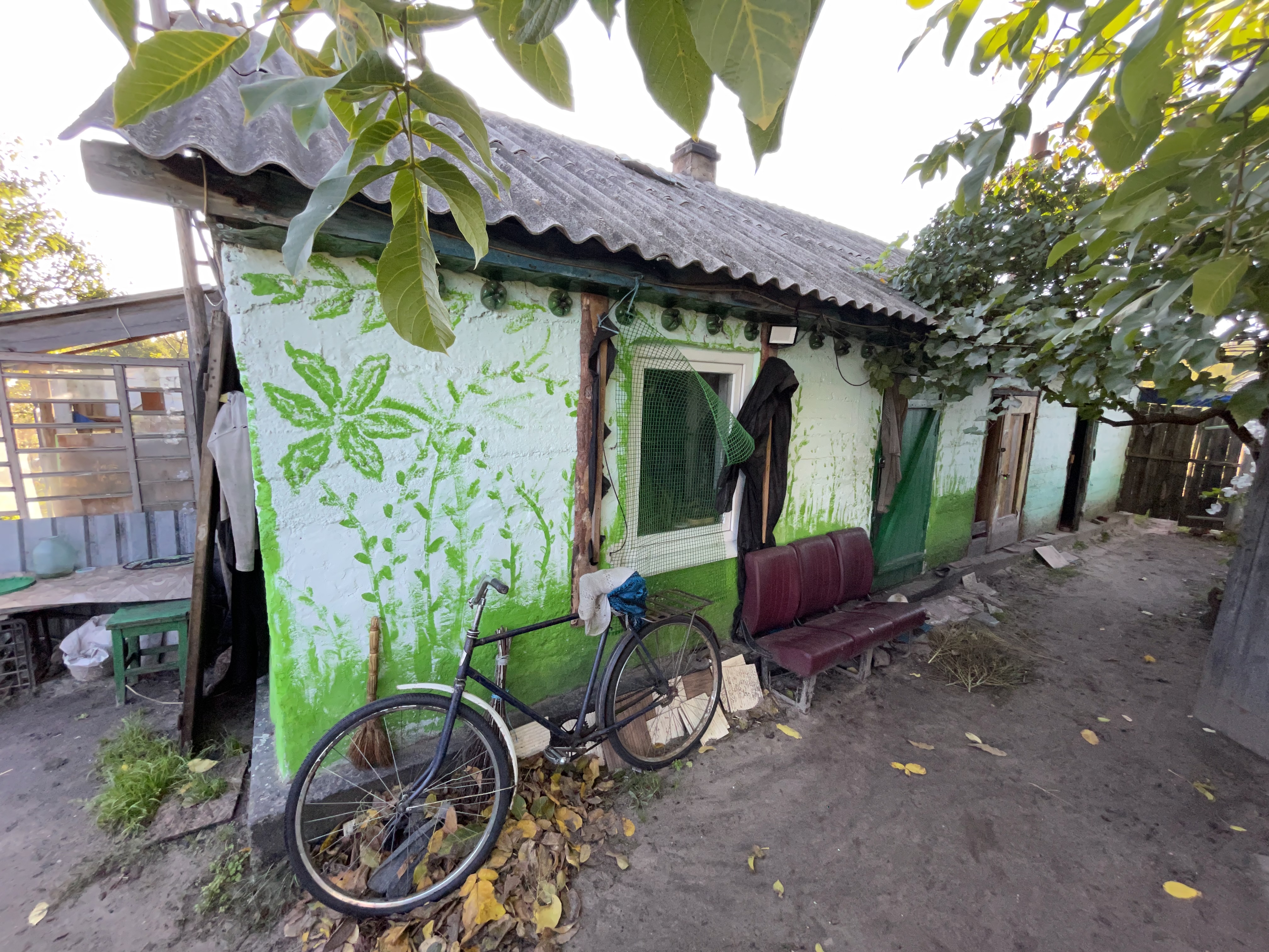 Sergej mi ukazuje, co vše tu našel. Torzo nebo kostra pravděpodobně rakety, kazetové bomby, kterou si tu schovali jako smutný suvenýr. Ukrajinská armáda Jampil osvobodila 30. září. Paní Ljubě se několik dní před tím zdál zvláštní sen. Viděla v něm bílého holuba, a protože má sedm koček, vstala a šla se podívat.