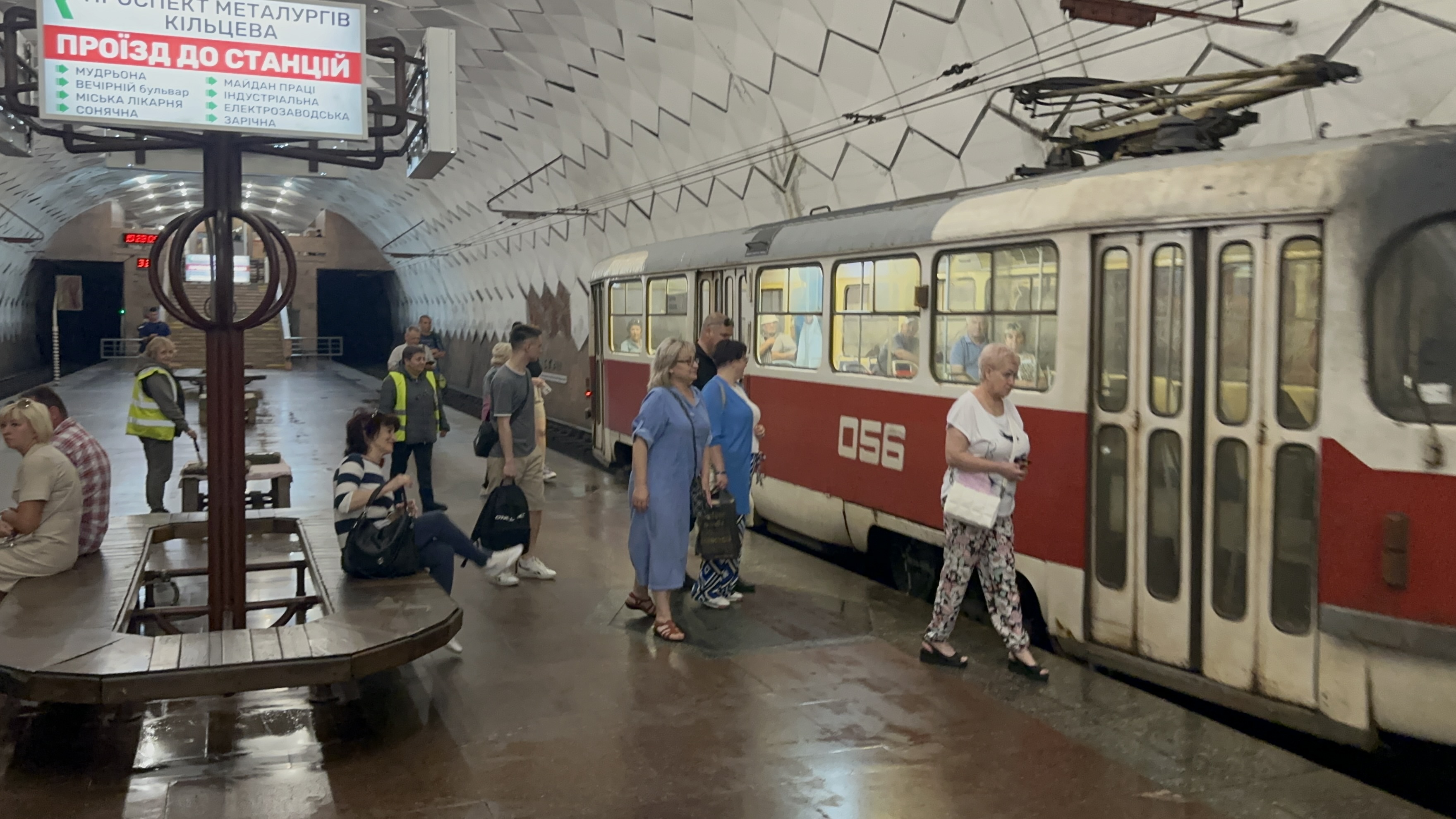 A dodává, že stanice podzemní tramvaje slouží v době leteckých poplachů také jako bezpečné kryty pro obyvatele. Jedna babička sem prý chodí spát každou noc – ráno vstane a jde domů.