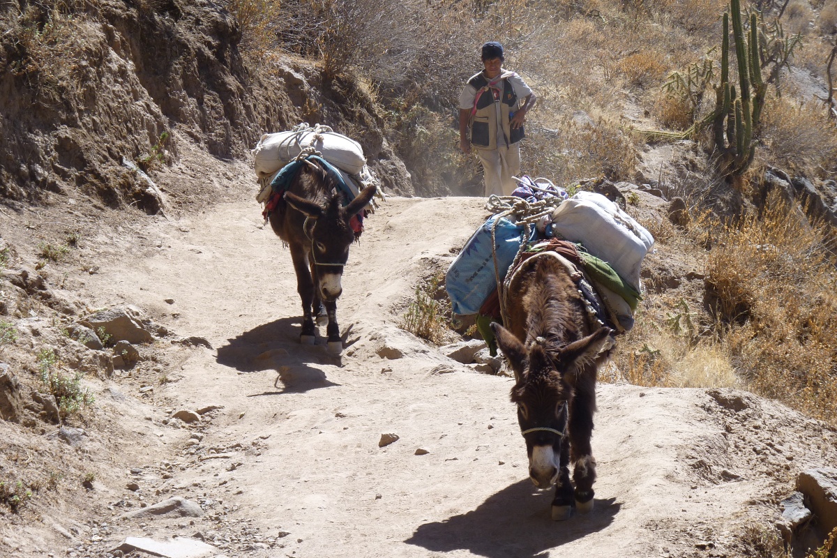 Dojeli jsme do Cabanaconde a vydáváme na výlet po úbočí kaňonu. Krajina připomíná poušť, ale políčka se přesto zelenají díky důmyslnému zavlažování. Během dne pálí slunce, večer spadne teplota na nulu. Jsme 4300 metrů vysoko a chůze do kopce nám bere dech.