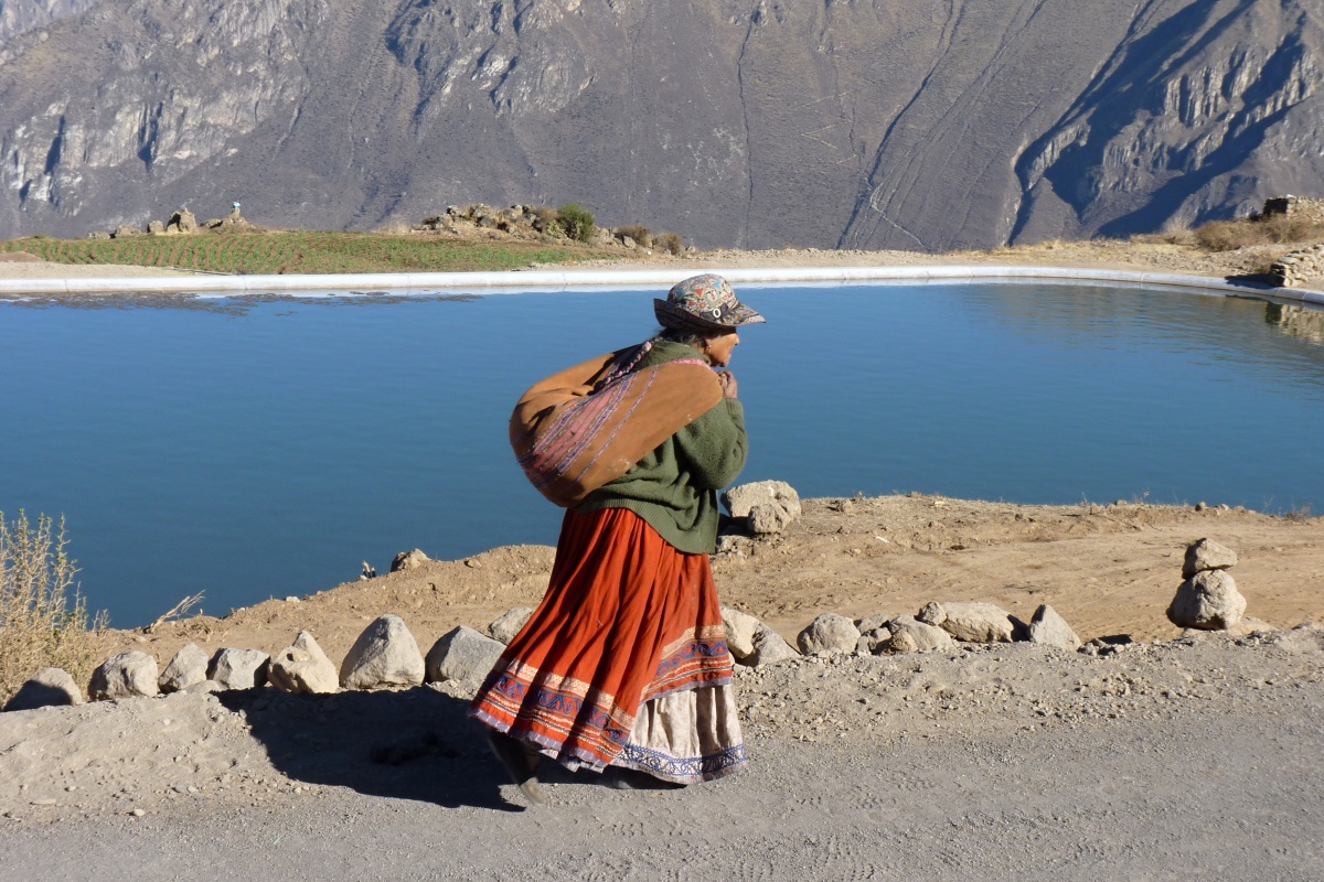 Cabanaconde je celkem ubohá vesnice – ulice plné psů, domy z hliněných cihel pokryté došky nebo jen plechem, ženy i děvčátka v krojích s vyšívanými klobouky. Výšivky jsou všechny stejné, jako je stále stejný i život ve vesnicích u kaňonu Colca.